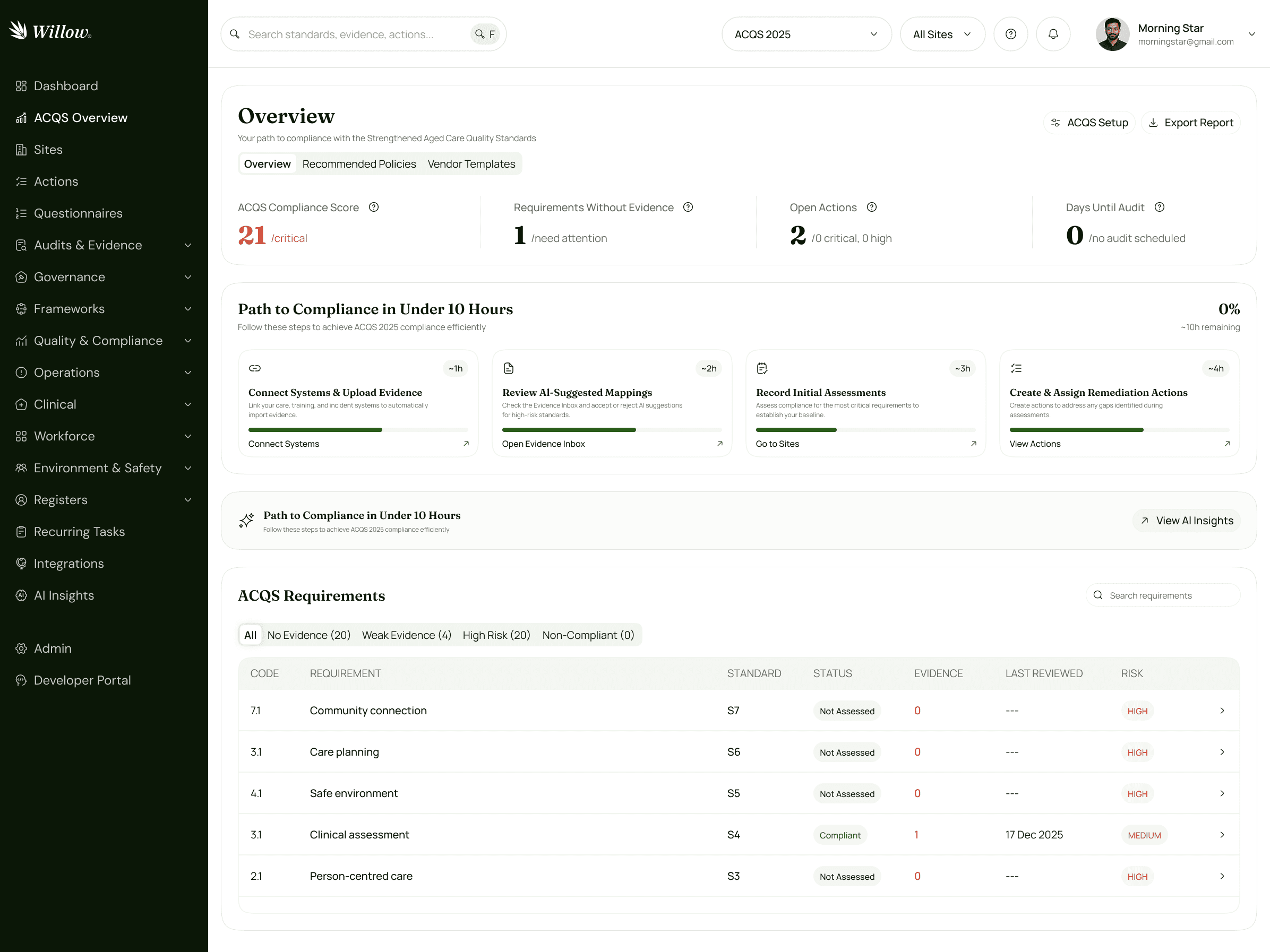 Ensure consistent governance across aged care organisations